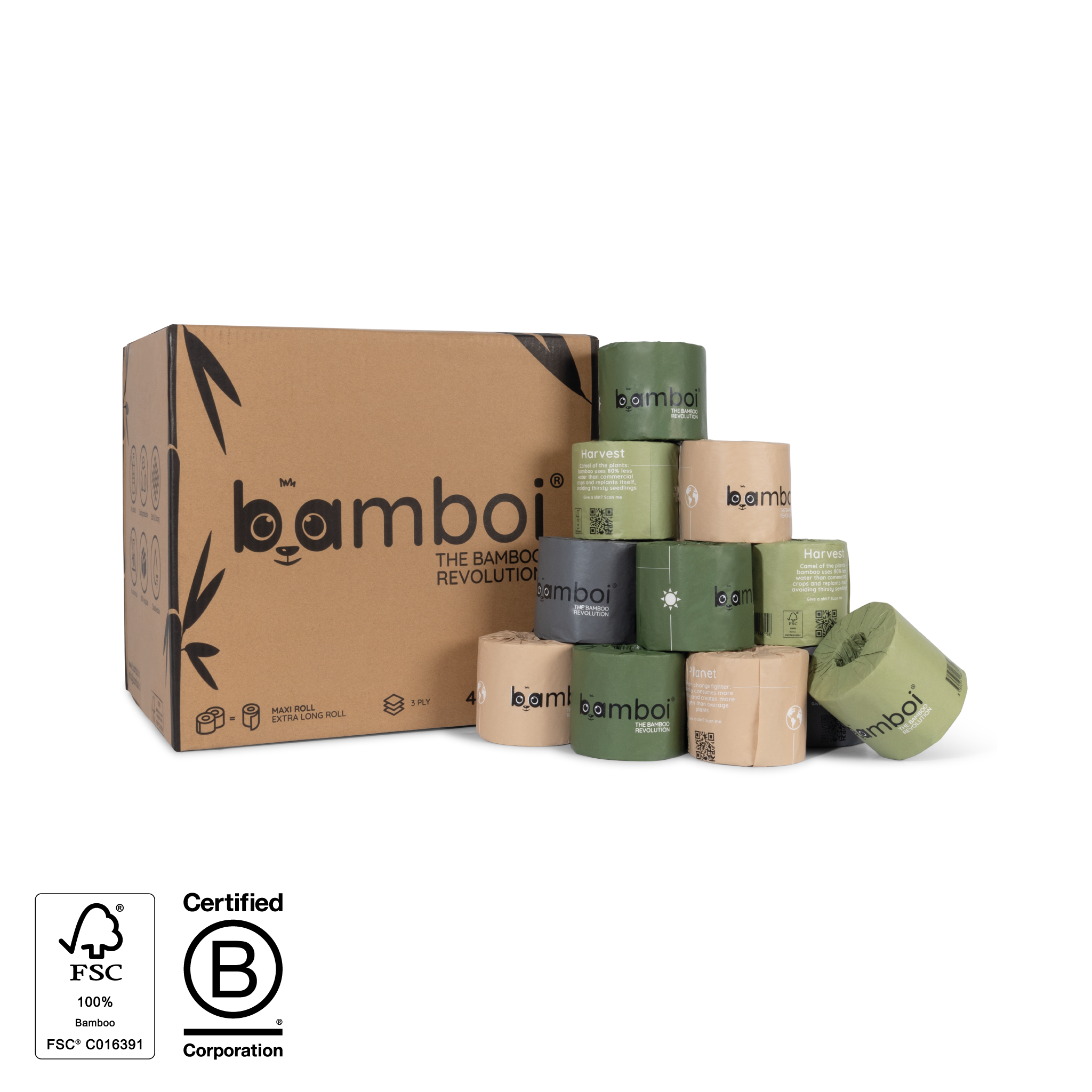 El papel higiénico Bamboi® está hecho de bambú 100% certificado FSC®, ayudando así a proteger los bosques restantes en la Tierra.